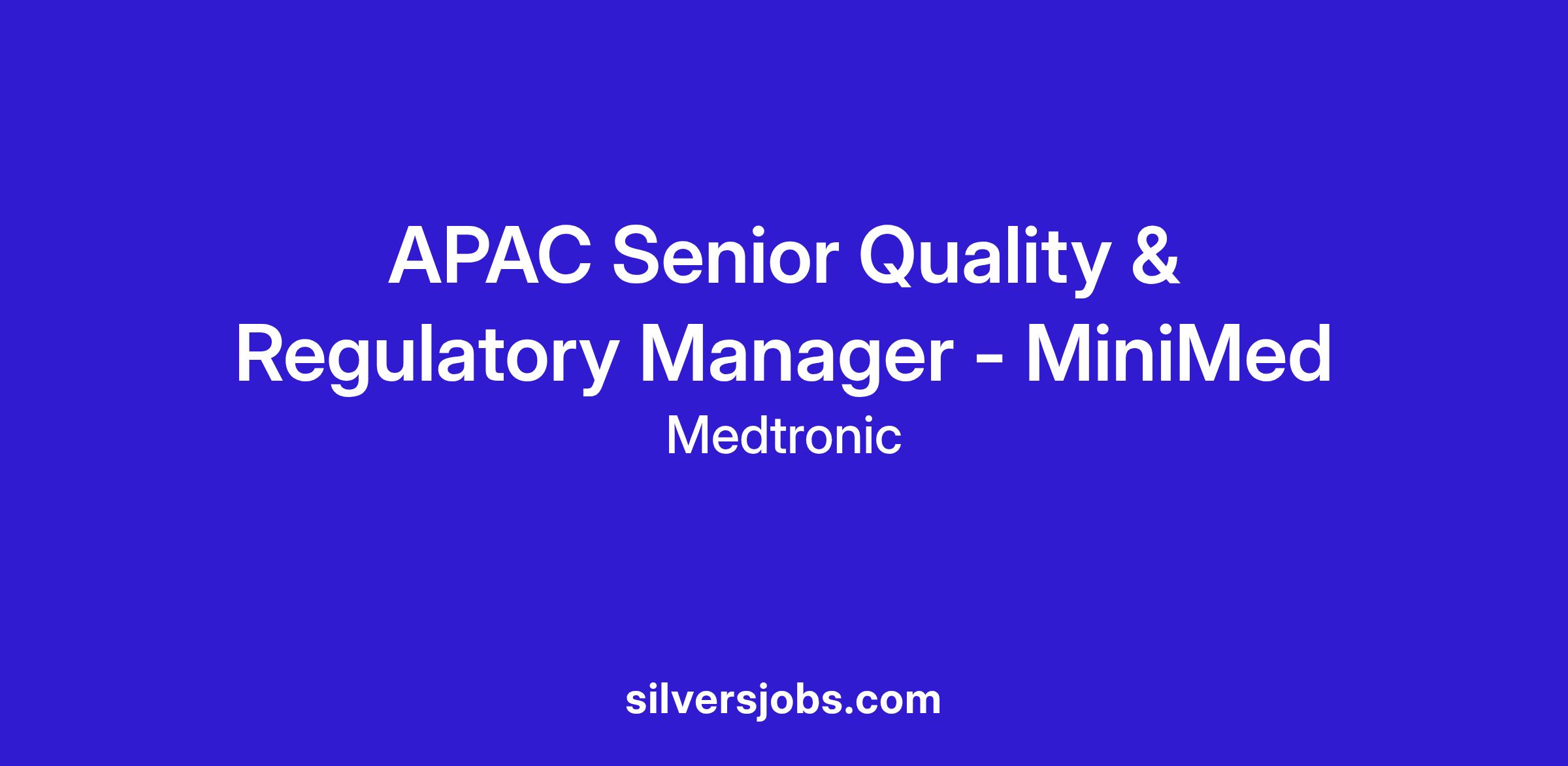 APAC Senior Quality & Regulatory Manager - MiniMed