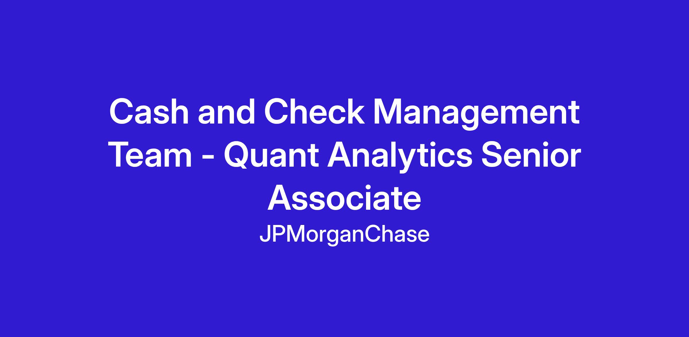 As a Quant Analytics Senior Associate, within the Cash and Check Management Analytics team, you will lead the analytics book of work and collaborate with a cross-functional team to support the Cash and Check Management Team and have the opportunity to build and update business cases, scope and define analyses, develop hypotheses, gather and validate data, conduct performance analysis, generate actionable insights, and contribute to the development and presentation of findings.