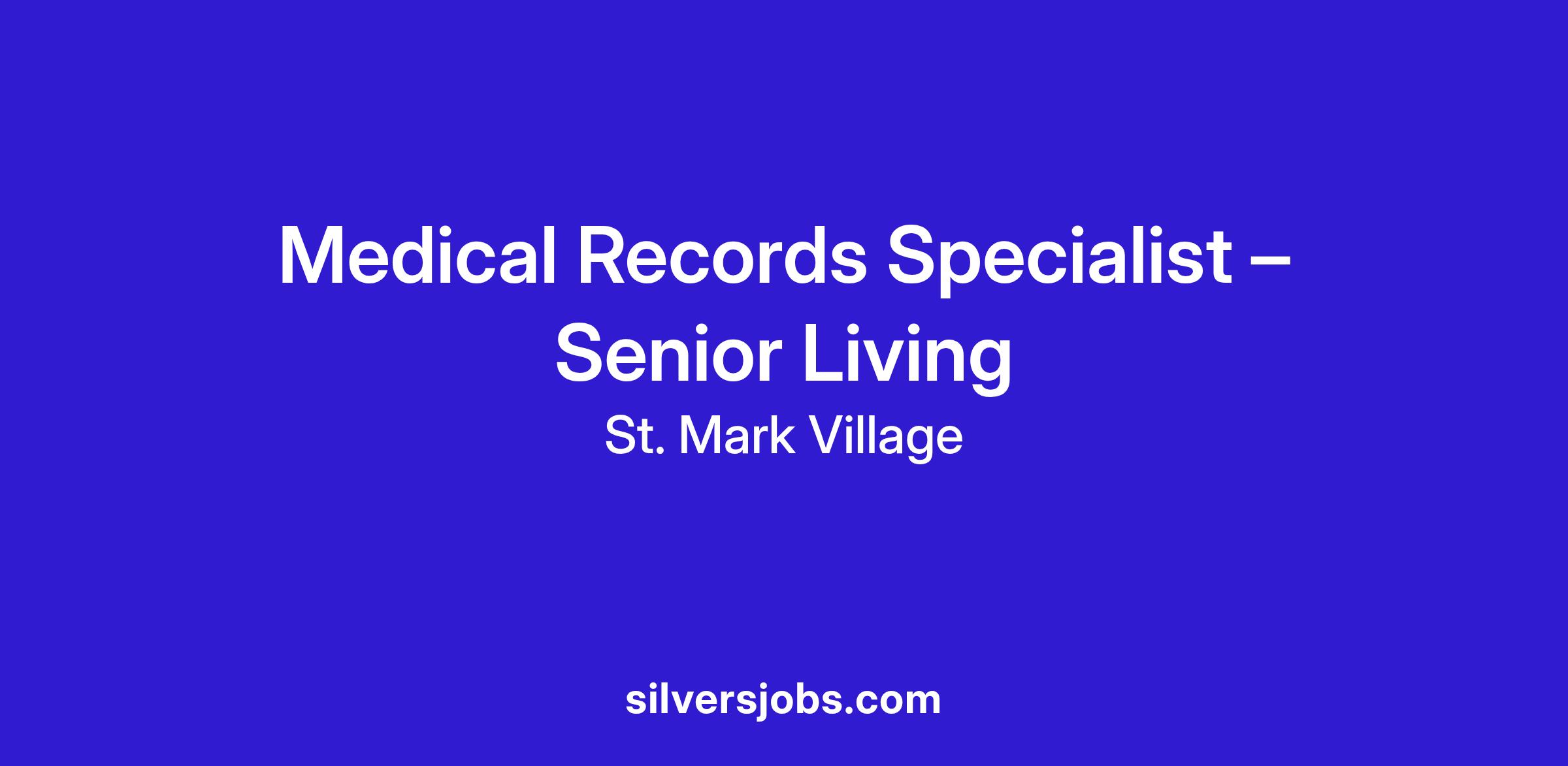 Start a meaningful career as a Medical Records Specialist – Senior Living with St. Mark Village.