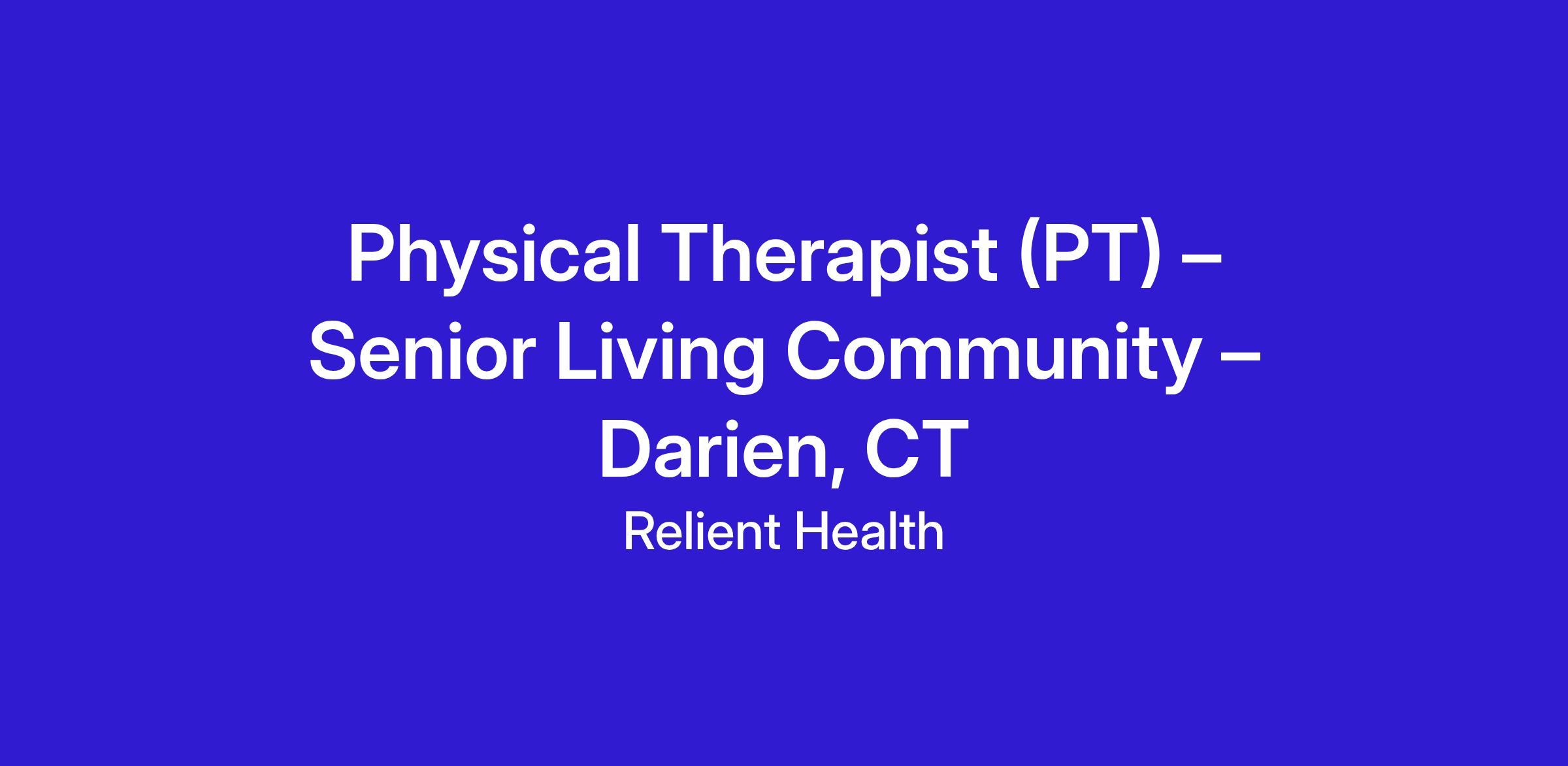 Physical Therapist (PT) – Senior Living Community – Darien, CT