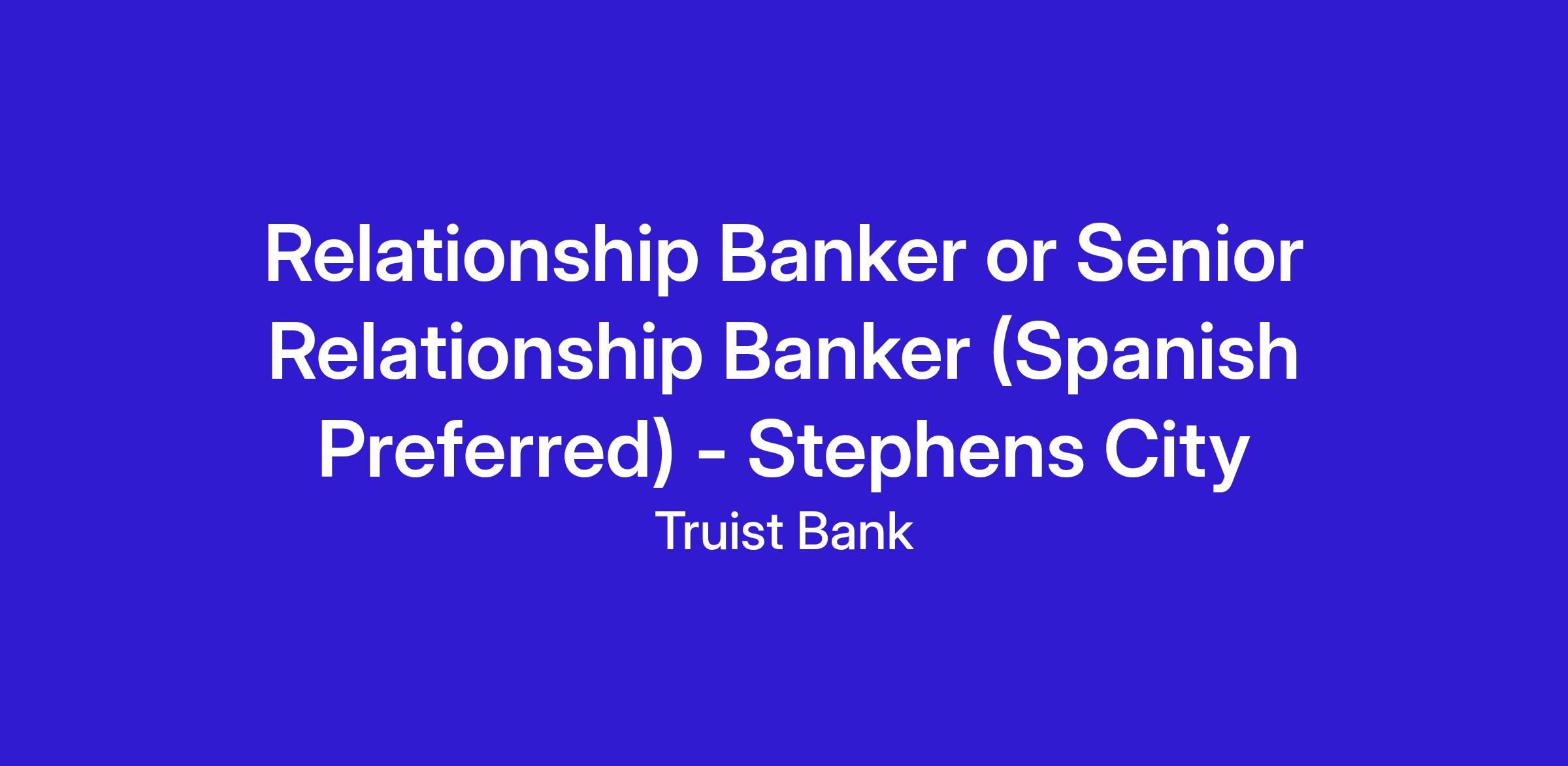 Relationship Banker or Senior Relationship Banker (Spanish Preferred) - Stephens City