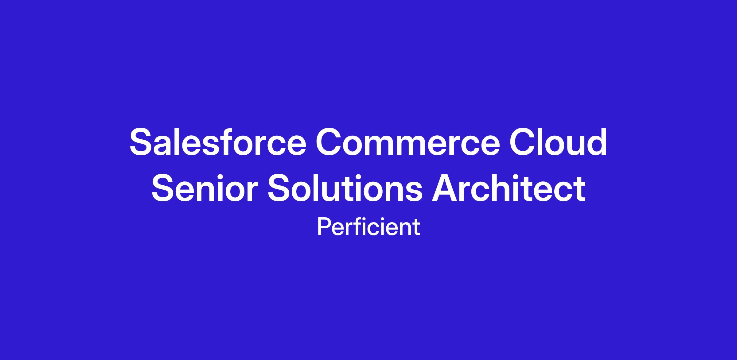We are seeking a highly skilled and experienced Salesforce Commerce Cloud Senior Solutions Architect to join our team. The ideal candidate must have significant expertise in designing, implementing, and deploying B2B Commerce Cloud solutions, coupled with strong B2B business domain knowledge and a focus on enabling Agent Force capabilities. This role requires a strategic thinker with deep technical knowledge and proven success in delivering scalable, enterprise-grade commerce solutions that drive business growth in B2B environments.