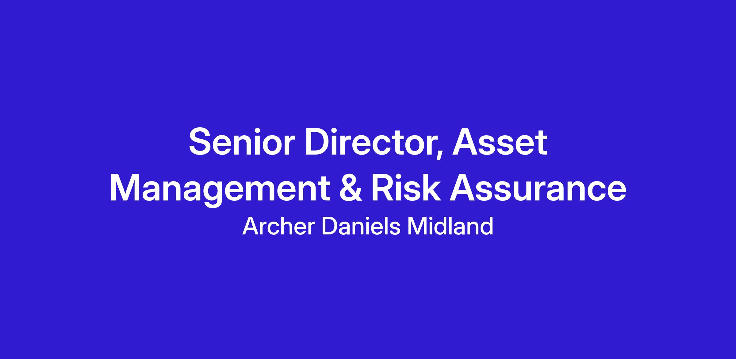 Senior Director, Asset Management & Risk Assurance – Decatur, Illinois or other Major Plant locations in the USAADM is seeking a Senior Director, Asset Management & Risk Assurance to help create and implement a governance model, assurance programs and the required processes elements for managing our physical assets in line with ISO 55000 and our integrated management system. The ideal candidate will be a self-starter who is passionate about safety, a critical thinker, proven people leader, and effective communicator. He/she will also have prior experience implementing asset management governance and assurances processes at the corporate level with a global scope.