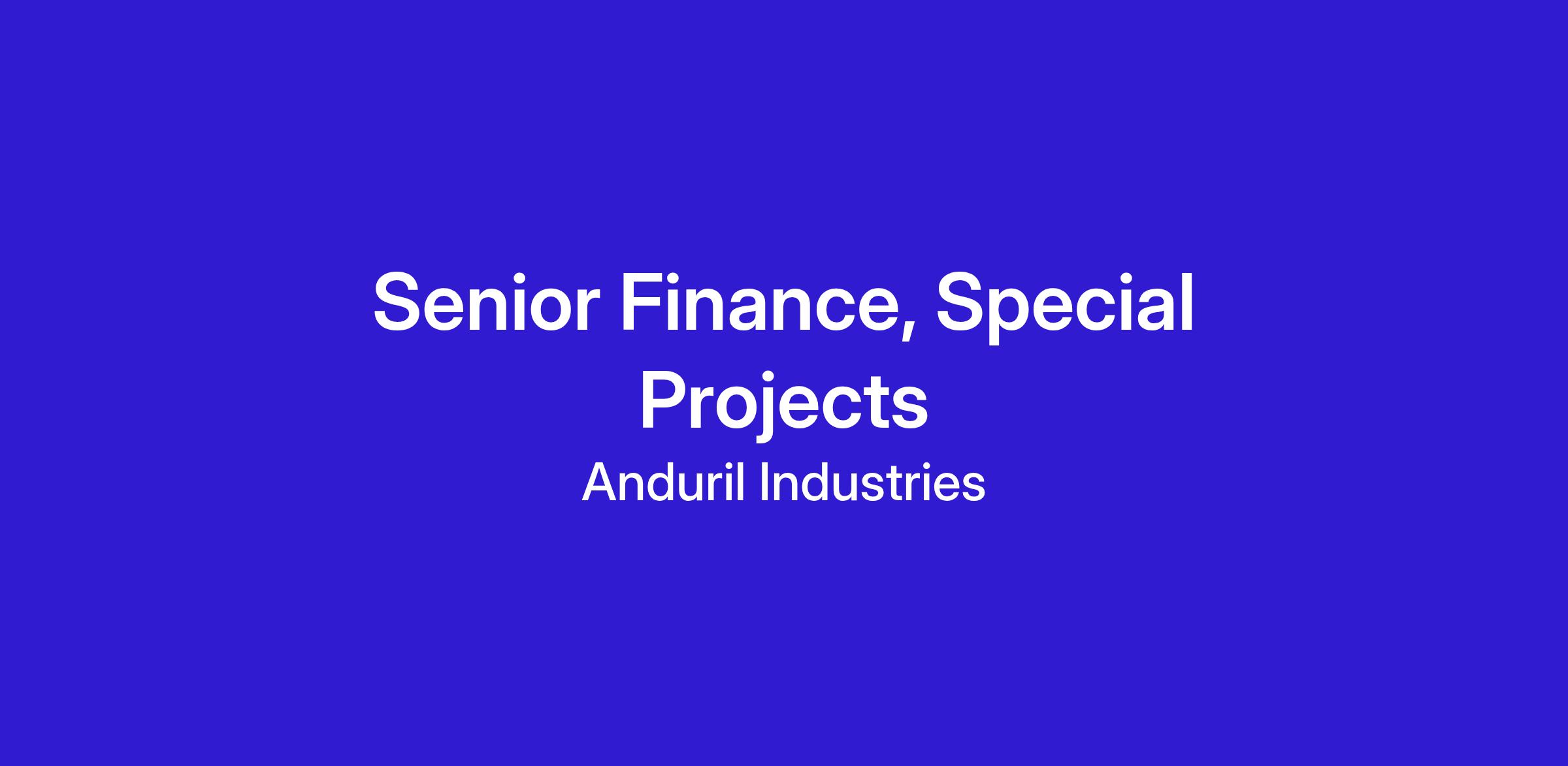 Senior Finance, Special Projects