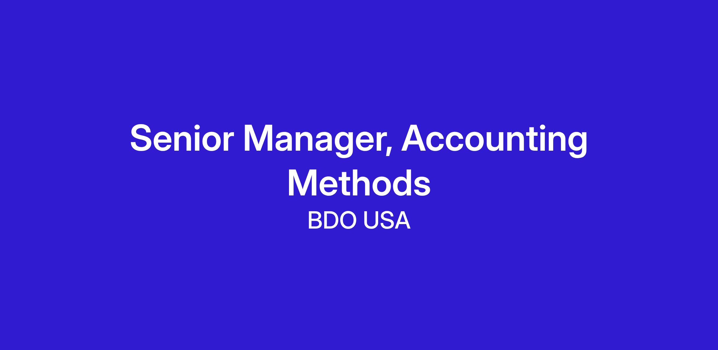 As an STS Tax Senior Manager, Accounting Methods, you will help achieve BDO’s core purpose—Helping People Thrive Every Day—by helping both public and private companies identify federal tax benefits and correct federal tax exposures. Our clients are leaders in industries such as technology, manufacturing, healthcare, architecture/engineering services, and consumer products. As an STS Tax Senior Manager, Accounting Methods, you will have the opportunity and charge to innovate and collaborate with fellow BDO colleagues in all of our business lines, as well as with our clients’ leaders in tax, accounting, and finance, and also in their operations, software, manufacturing, and supply chain departments.