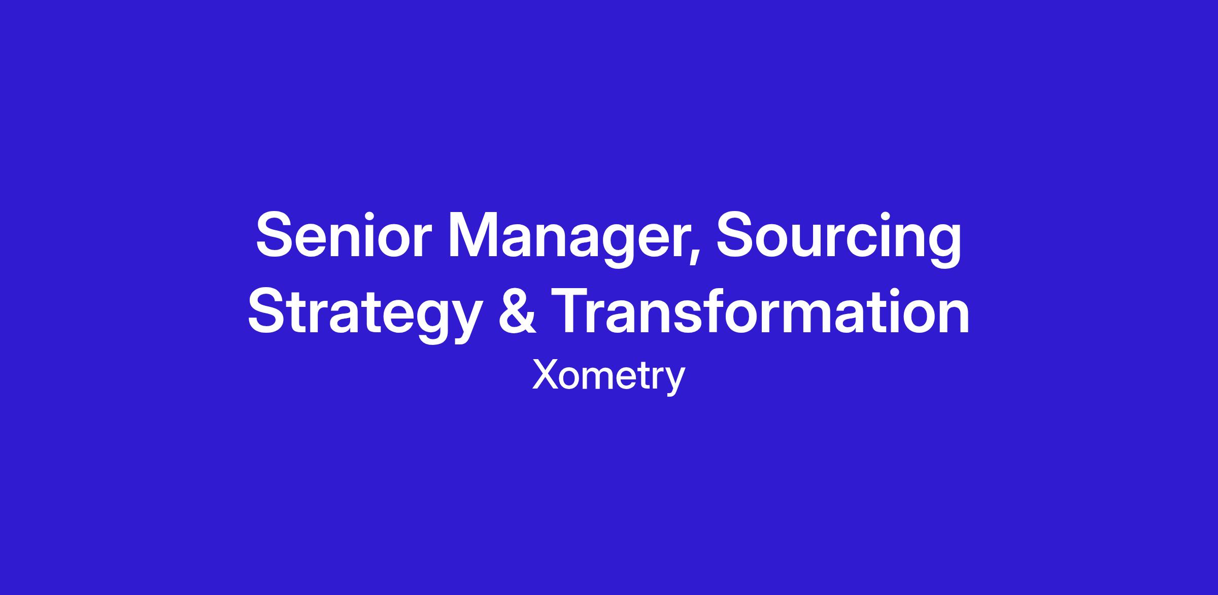 Xometry is seeking a Senior Manager, Sourcing Strategy & Transformation, to join our team. As the Senior Manager, you will own and drive the strategic vision for driving sourcing efficiency across manufacturing verticals: CNC Machining, Additive Manufacturing, Sheet & Tube Fabrication. Sourcing platform is the key enabler for revenue and margin growth. In this role, you would be the key leader responsible for solving complex sourcing problems by collaborating with product, engineering, pricing, operation and sales to achieve hyper growth for the Xometry marketplace. This critical leadership role directly impacts marketplace growth as we revolutionize the $2 trillion custom manufacturing industry through our AI-powered platform. You will have responsibility for driving sourcing tech and process transformation, to support our mission to become the “Everything Store” for custom manufacturing. Working at the intersection of technology, manufacturing, and marketplace dynamics, you’ll help shape Xometry’s future while delivering exceptional value to both buyers and suppliers.