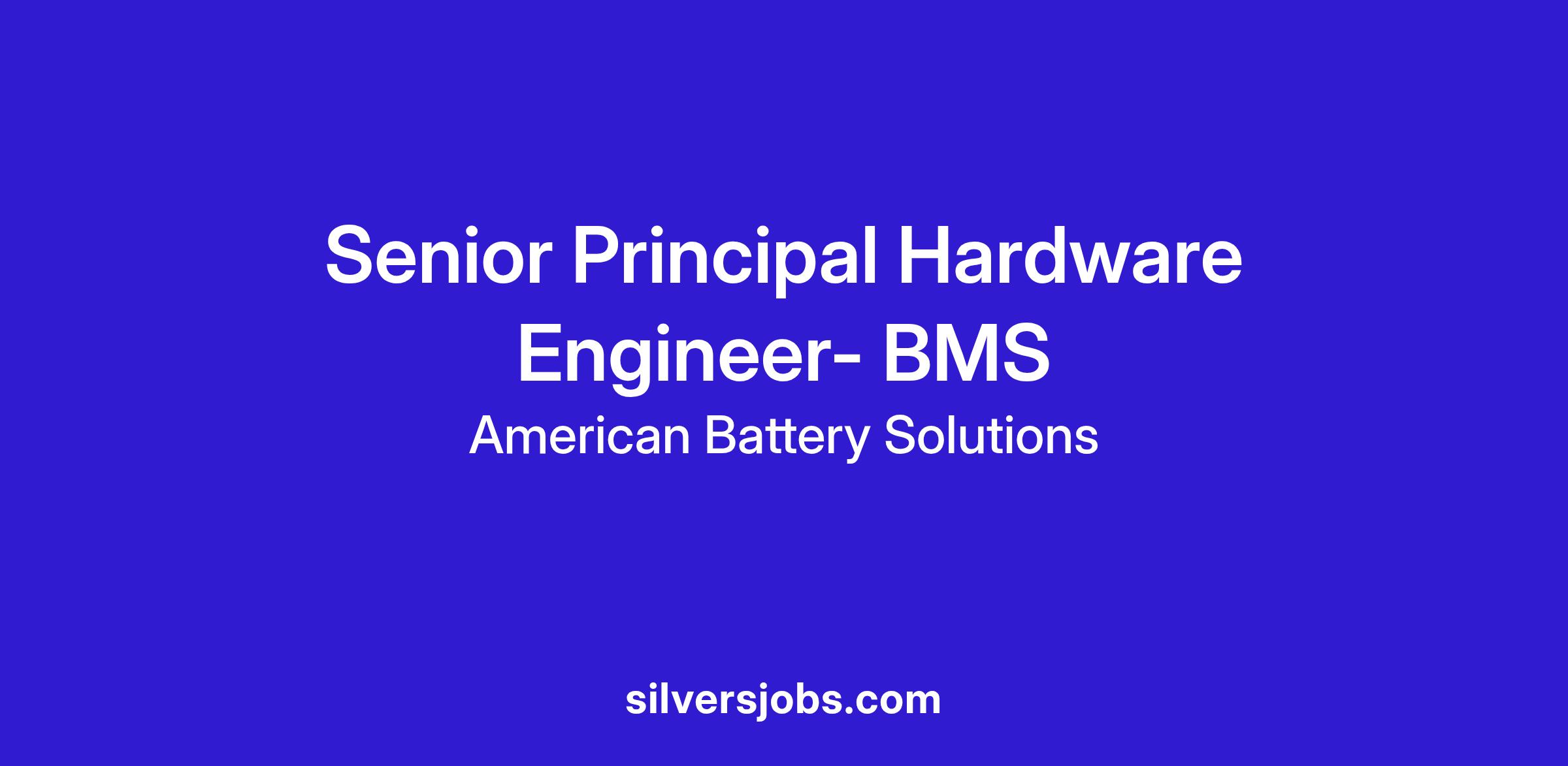 The Senior Principal Hardware Engineer - BMS provides deep domain expertise in high-voltage measurement architecture, cell and pack monitoring circuits, functional safety design, and the hardware aspects of American Battery Solutions (“ABS”) product design. This position influences product strategy, leads key technical decisions, mentors engineering teams, and ensures ABS battery monitoring hardware meets world-class standards for safety, reliability, and performance.