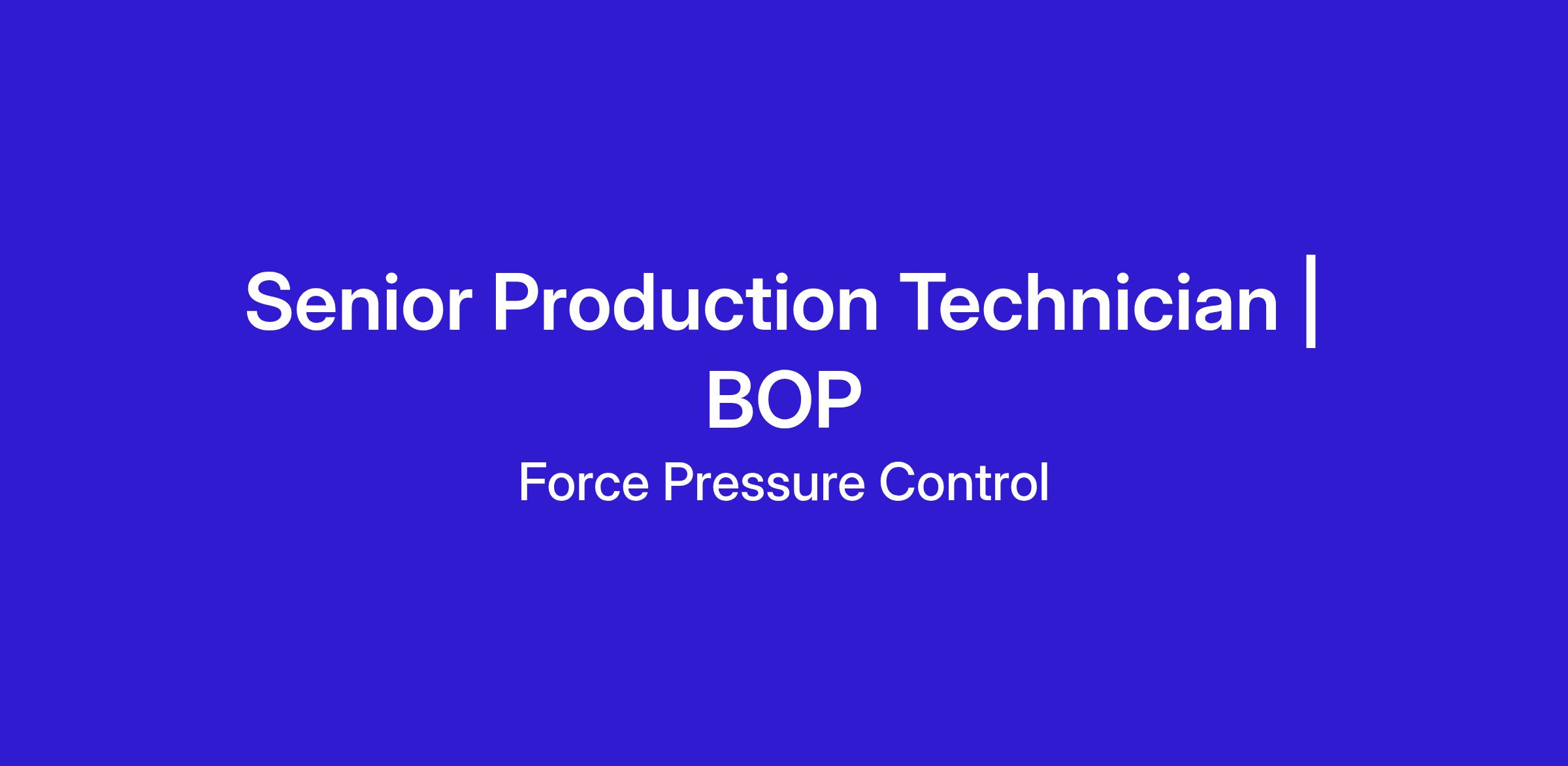Force Pressure Control is seeking safety-oriented production personnel to work in its Permian facility in Odessa, TX. Production personnel will be tasked with inspection, rebuild, and maintenance of blowout preventer inventory and associated equipment. Production personnel may, at times, be required to perform field-related tasks including, but not limited to, the rigging up / down of equipment, function testing, pressure testing, component alterations, etc.