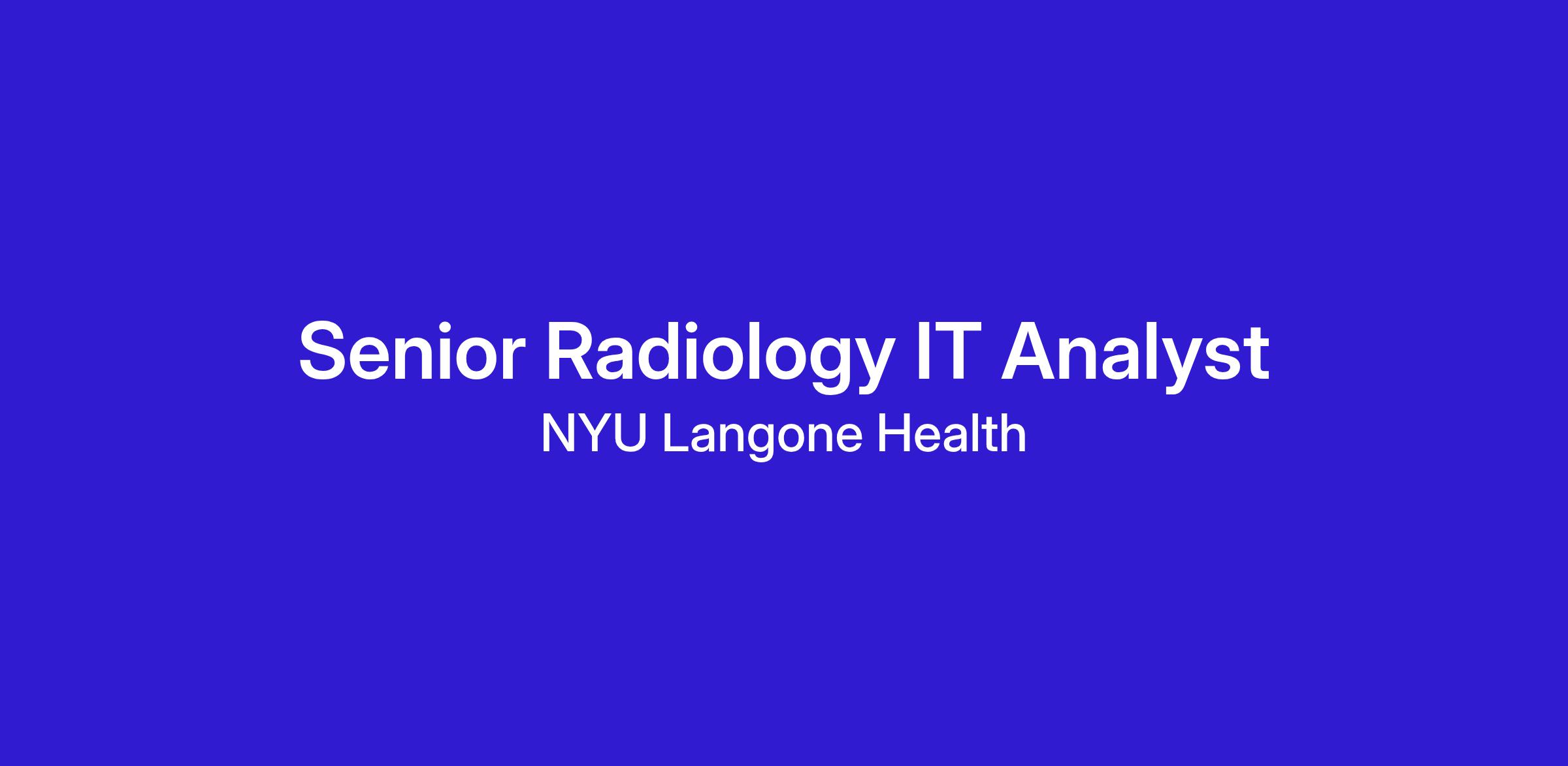 We are seeking a Radiology IT Solutions Development Senior Analyst to join our team, who will be supervised by Marc Parente. The ideal candidate will have a strong background in radiology information technology, with expertise in supporting radiology workflows, imaging applications, and end-users. This individual will provide day-to-day support to radiologists and radiology staff, collaborate with vendors and project managers on key initiatives, and ensure seamless operation of imaging systems. Superior customer service, technical troubleshooting skills, and knowledge of radiology applications are critical for success in this role.