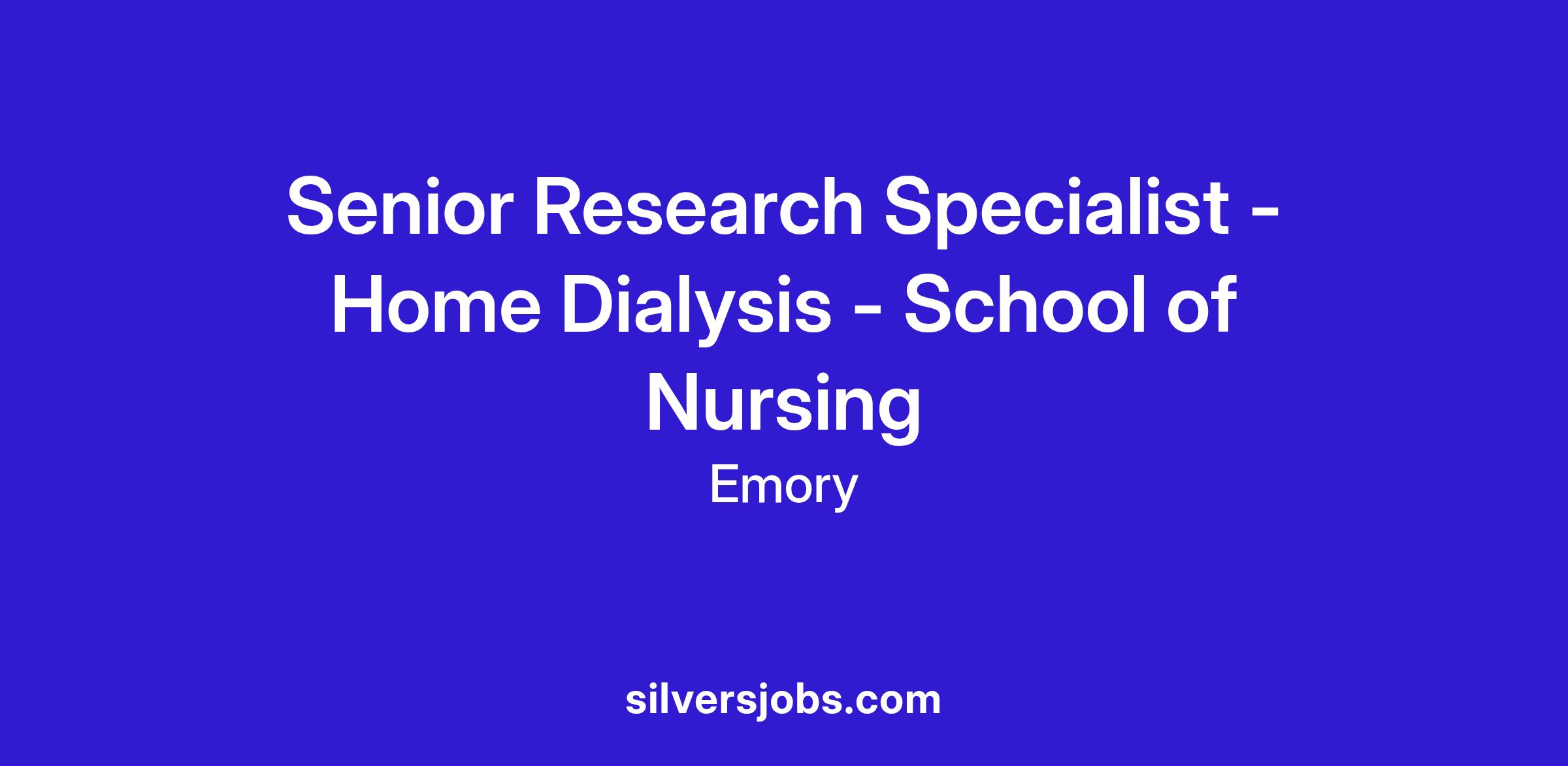 The Senior Research Specialist will oversee day-to-day study operation, including home dialysis patient and caregiver participant recruitment, data collection, retention activities, tracking study visits/calls, and data management. This position will also develop and update SOPs and other related study documents.