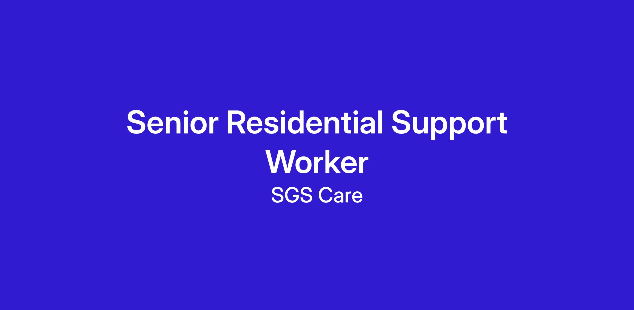 Job Title: Team Leader / Senior Residential Support Worker / Shift Lead