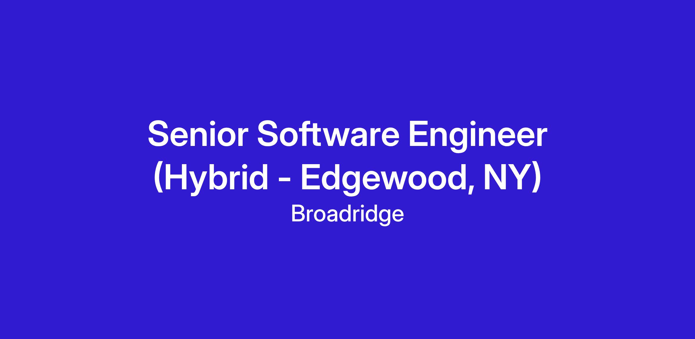 Broadridge is growing! We are seeking an enthusiastic Senior Software Engineer (Java) to join our team. In this role, you will work with internal teams and business partners to design, develop, and implement scalable technology solutions that support core business systems. The successful candidate will be organized, collaborative, and motivated to deliver reliable, high‑quality applications.