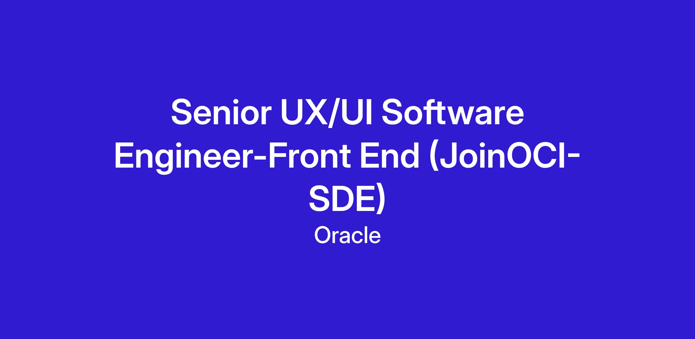ResponsibilitiesThe Senior UX/UI Engineer role both works on UI projects for new features and products the Console organization is building as well as the components that other UX/UI Engineers use to build their own UI's. As a Senior you will work with Product/Design during the design phase, author a technical approach to building the features, breakdown, refine, and deliver the work with your team. The ideal candidate will be passionate, self-motivated, able to multitask effectively, and have strong communication skills. This individual will be fairly autonomous and be expected to contribute to a wide range of high-impact projects across the Oracle Cloud Infrastructure console. Daily tasks include UI development, testing, CI/CD, participating in scrum activities, and integrate with User Experience, Product, Support and Project Management, and Service Teams.