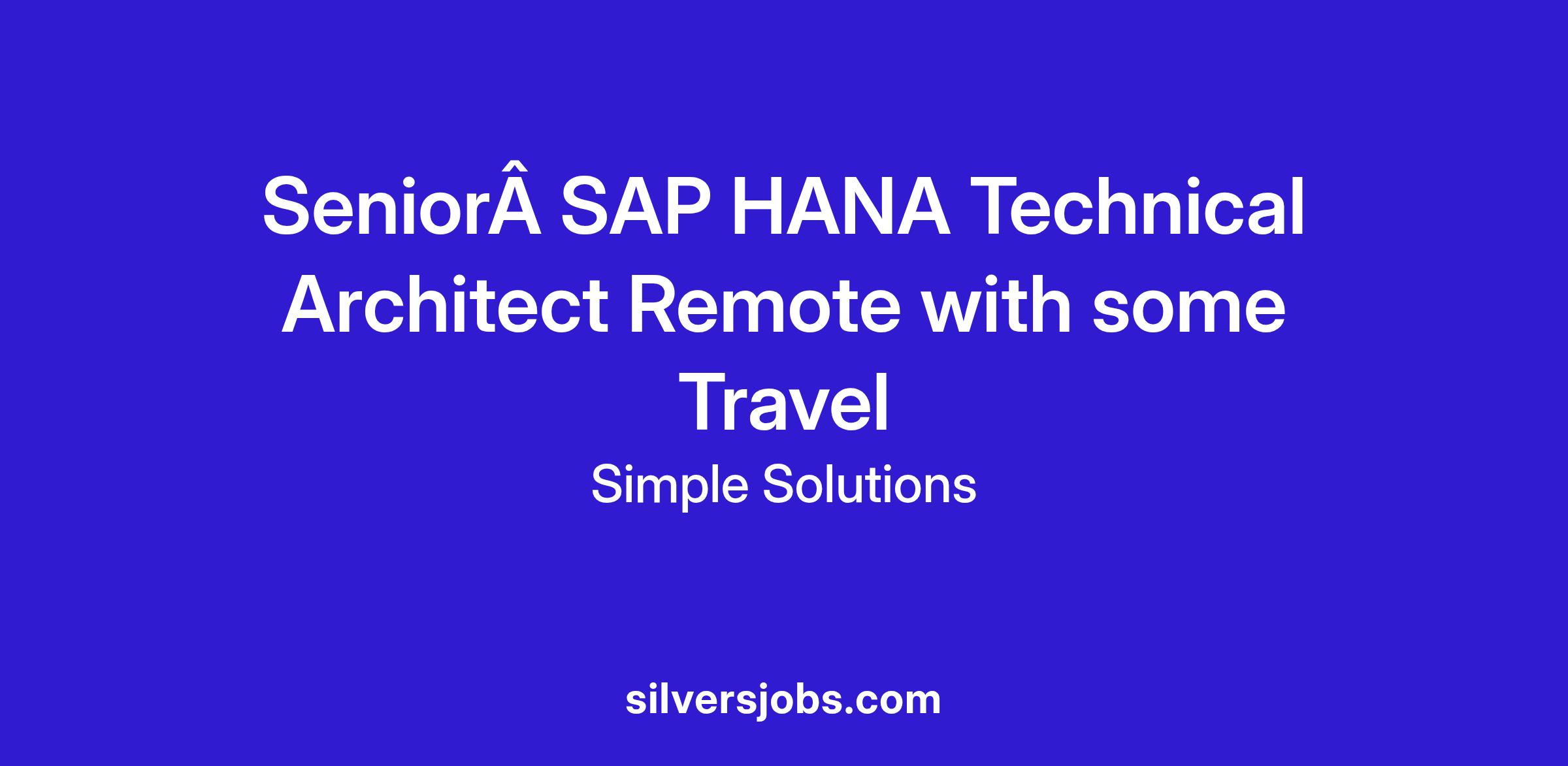 <\/html>"}}],"isMobile":false,"iframe":"true","jobType":"Contract","applyName":"Apply Now","zsoid":"662490260","FontFamily":"PuviRegular","jobOtherDetails":[{"fieldLabel":"Industry","uitype":2,"value":"Construction"},{"fieldLabel":"Job Opening ID","uitype":111,"value":"ZR_2696_JOB"},{"fieldLabel":"Work Experience","uitype":2,"value":"10+ Years"},{"fieldLabel":"Salary","uitype":1,"value":"$85\-$100"},{"fieldLabel":"City","uitype":1,"value":"Jacksonville"},{"fieldLabel":"State\/Province","uitype":1,"value":"Florida"},{"fieldLabel":"Zip\/Postal Code","uitype":1,"value":"32201"}],"headerName":"Senior SAP HANA Technical Architect Remote with some Travel","widgetId":"441940000000072311","isJobBoard":"false","userId":"441940000000194003","attachArr":[],"customTemplate":"3","isCandidateLoginEnabled":true,"jobId":"441940000102757759","FontSize":"15","googleIndexUrl":"https:\/\/simplesolutions.zohorecruit.com\/recruit\/ViewJob.na?digest=y7aAKF2qOzvLOXeqB8tAB.bf2r5wXAt7@icTdOA5vOM\-&embedsource=Google","location":"Jacksonville","embedsource":"CareerSite","indeedCallBackUrl":"https:\/\/recruit.zoho.com\/recruit\/JBApplyAuth.do","logoId":"60ly0a8d0c6dd592942c4b0bb6d05adacee99"}