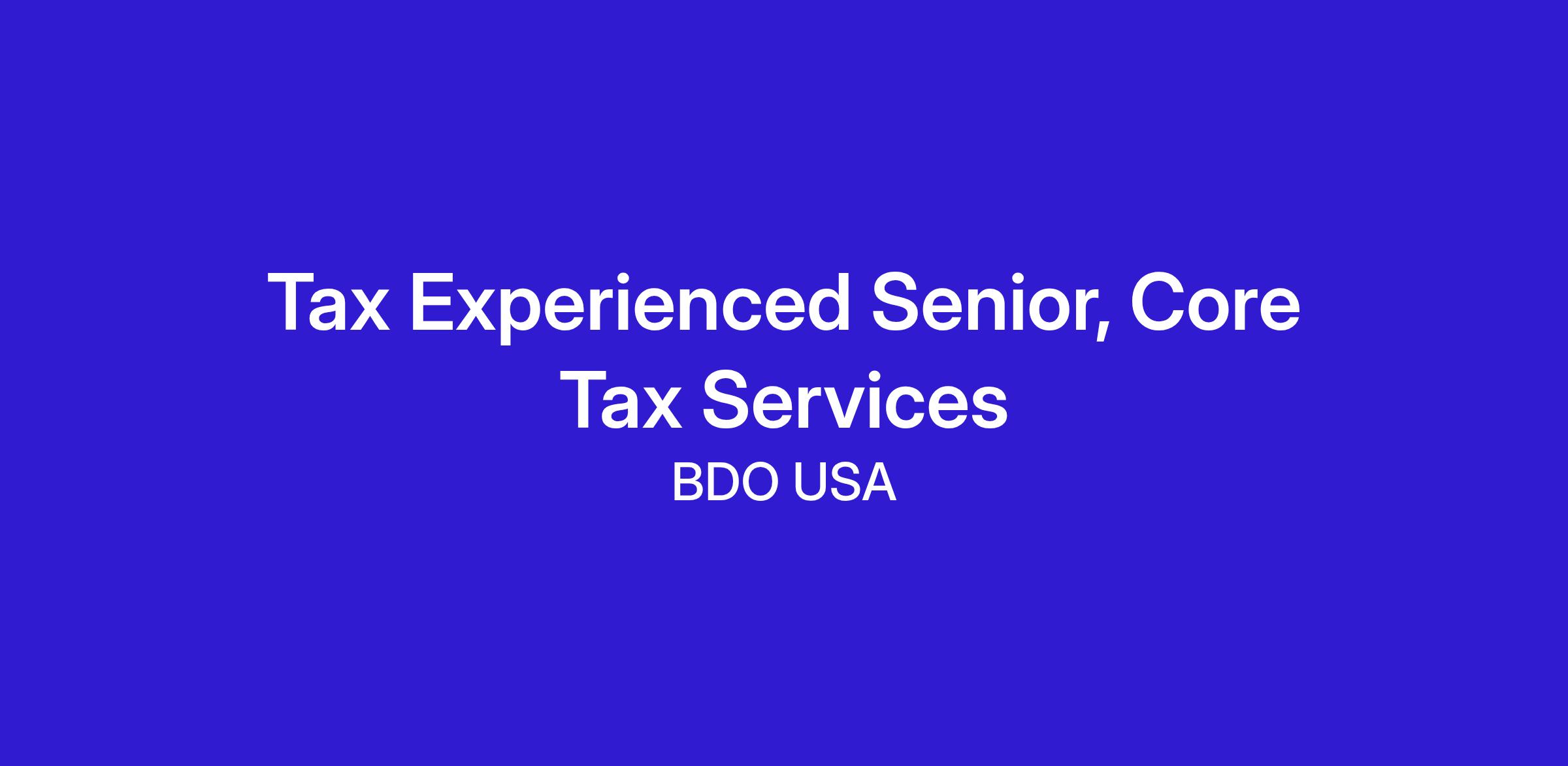 A Tax Experienced Senior, Core Tax Services is responsible for utilizing research skills, applying tax foundational knowledge to understand potential tax issues, gathering client information necessary for filing, participating in tax planning, recognizing and communicating potential risks, preparing tax accrual workpapers and working with tax software applications to complete tax returns for review. In this role, the Tax Experienced Senior, Core Tax Services will act as the main client contact for general questions and information and may be charged with supervising and reviewing the work of Core Tax Services Associates.